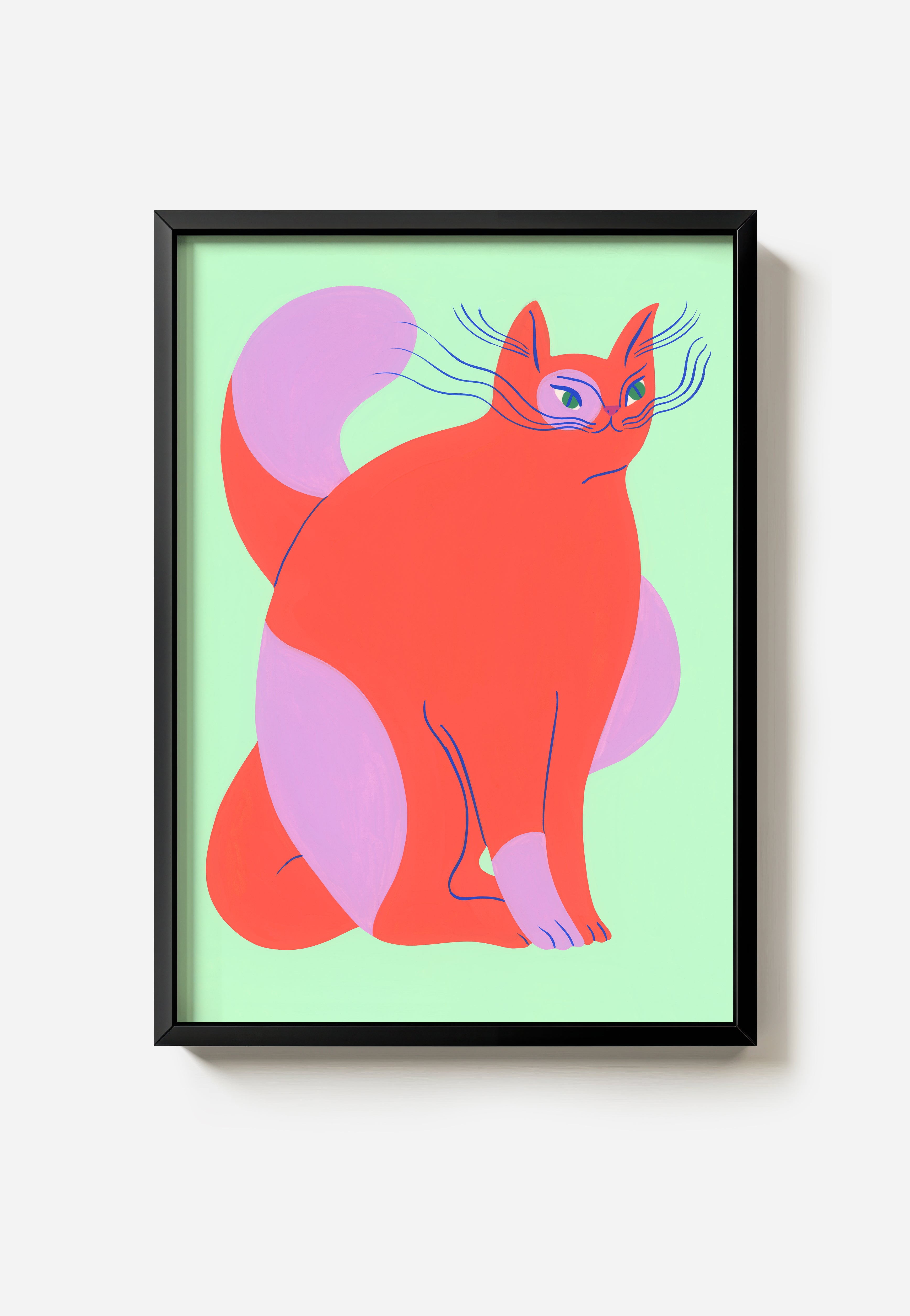 Part of Agathe's Cat collection this colourful illustrated cat on a pistachio coloured background.
